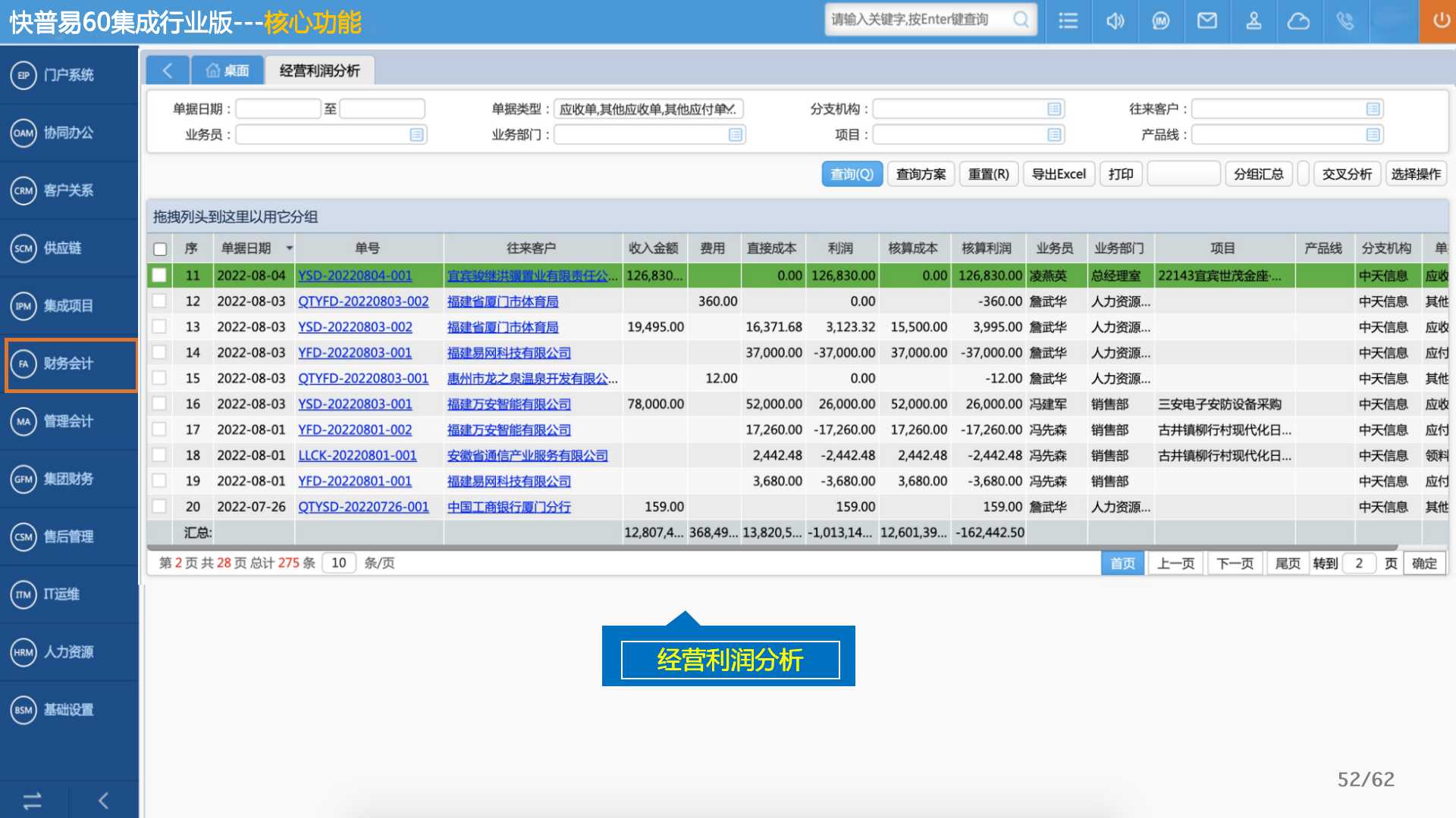 以“客戶”為中心提供相關(guān)集成解決方案,同時(shí)兼營(yíng)產(chǎn)品銷售、分銷批發(fā)——多業(yè)務(wù)模式并行是集成企業(yè)管理的難點(diǎn),而項(xiàng)目管理則是難點(diǎn)中的重點(diǎn)。集成項(xiàng)目有大有小、周期長(zhǎng)短不一,貨品多樣化且客戶要求高,從供貨到項(xiàng)目進(jìn)度、費(fèi)用核算、利潤(rùn)分析等都急需一套規(guī)范且靈活的方案。