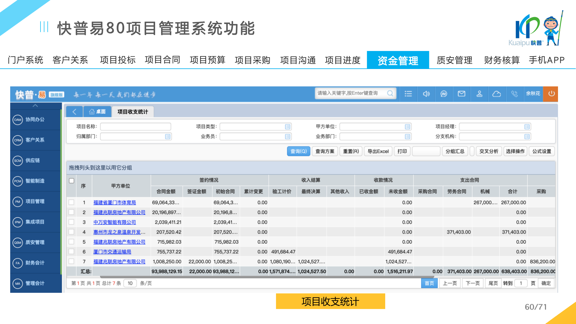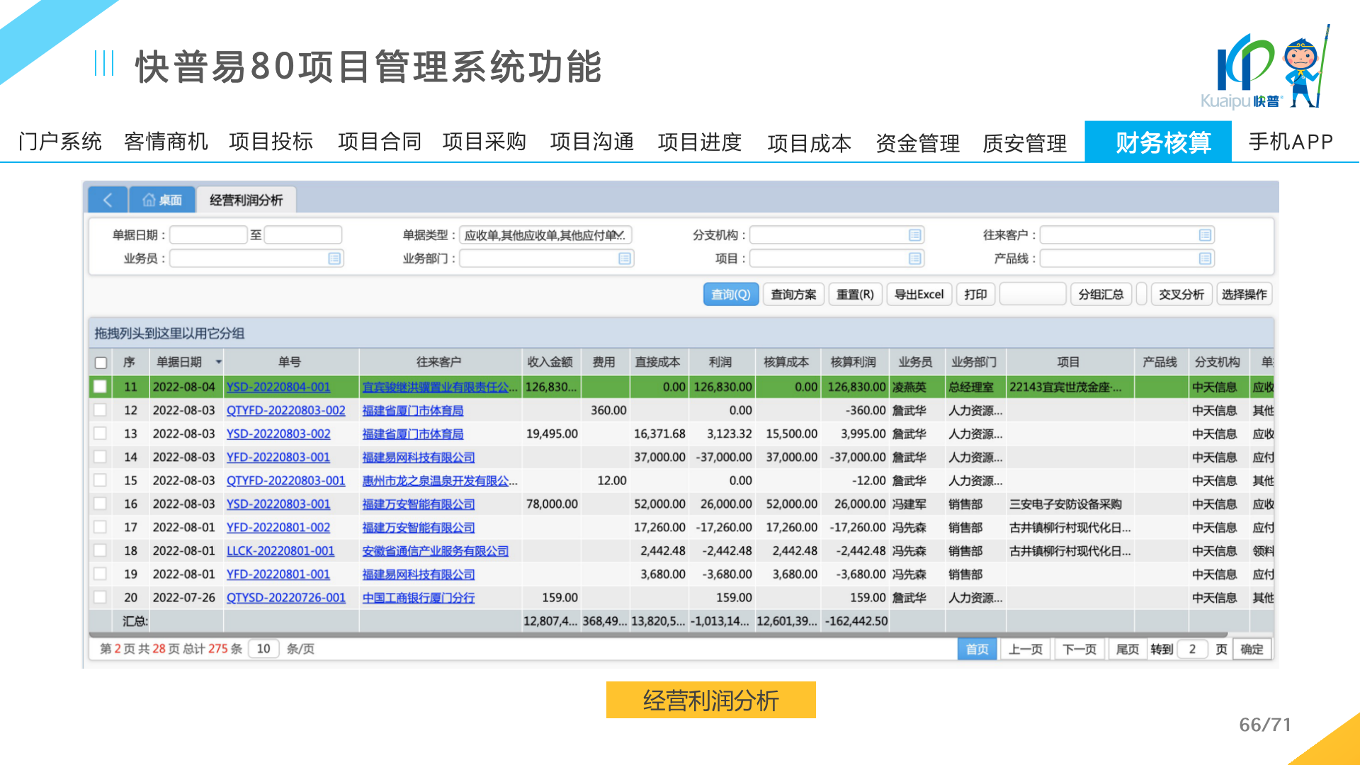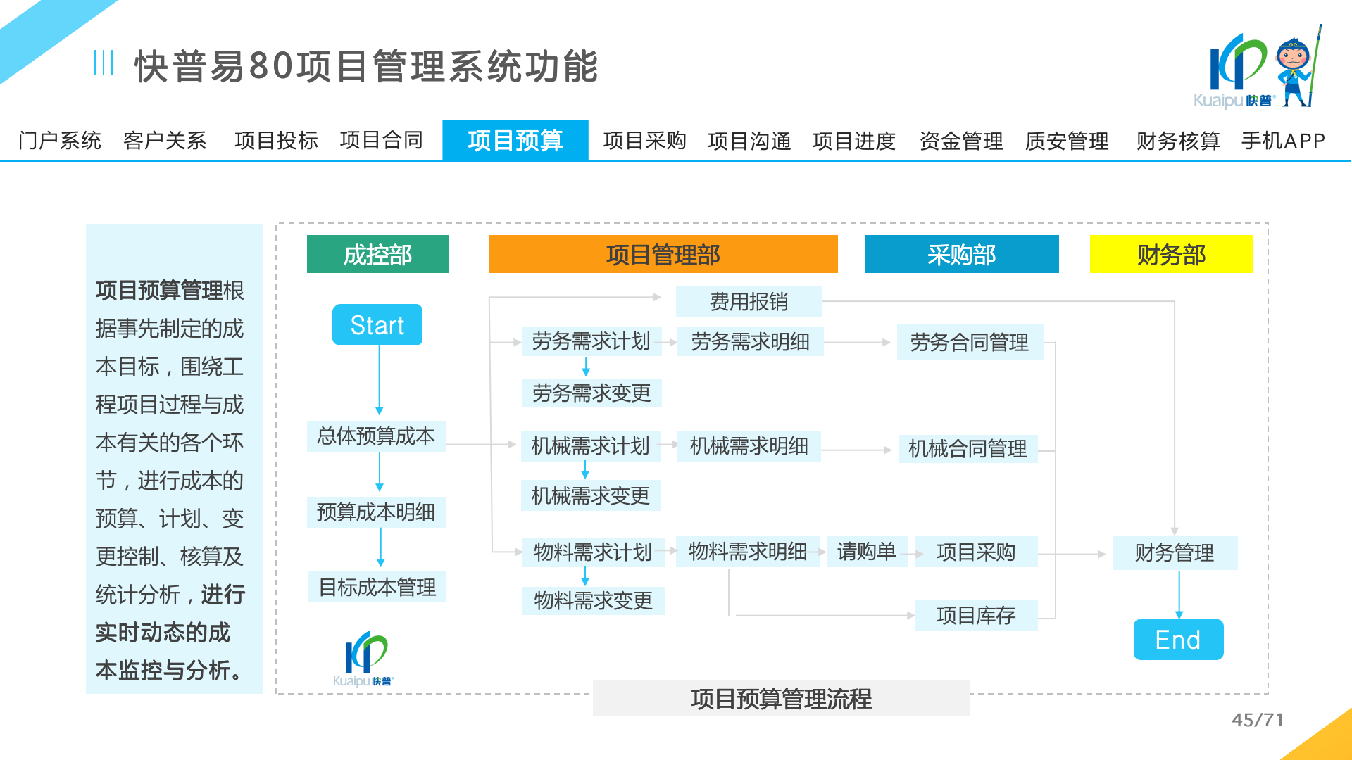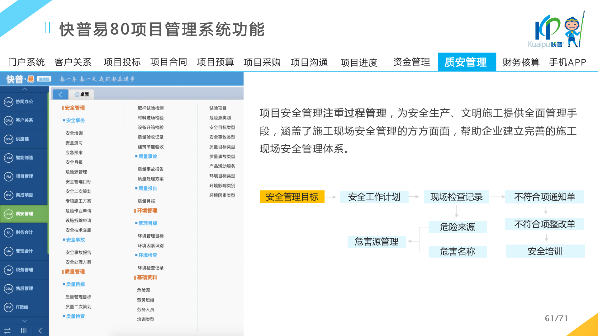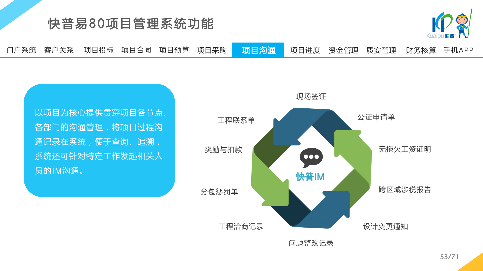 快普易80以項(xiàng)目管理為核心,通過(guò)“四控、四管、一協(xié)調(diào)”方式,對(duì)項(xiàng)目進(jìn)度、成本、資金、質(zhì)量安全進(jìn)行全面控制,實(shí)現(xiàn)投標(biāo)管理、合同管理、物資管理、預(yù)算管理等項(xiàng)目全生命周期項(xiàng)目的數(shù)字化管理,實(shí)現(xiàn)資源合理配置、保障良好的項(xiàng)目效益。