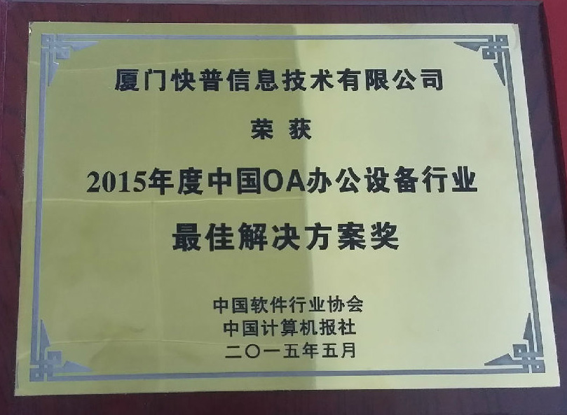 近日,第十九屆中國軟件博覽會在北京展覽館隆重舉行,工業(yè)和信息化部部長苗圩出席并講話,由工業(yè)和信息化部副部長懷進(jìn)鵬主持開幕式。廈門快普作為中國整合管理的倡導(dǎo)者和領(lǐng)導(dǎo)者連續(xù)四年受邀參加軟博會,憑借多年在工程項(xiàng)目領(lǐng)域及OA辦公設(shè)備行業(yè)精耕細(xì)作,在本屆大會上同時榮獲兩項(xiàng)大獎:“2015年度中國工程項(xiàng)目行業(yè)突出貢獻(xiàn)獎”和“2015年度中國OA辦公設(shè)備行業(yè)最佳解決方案獎”!