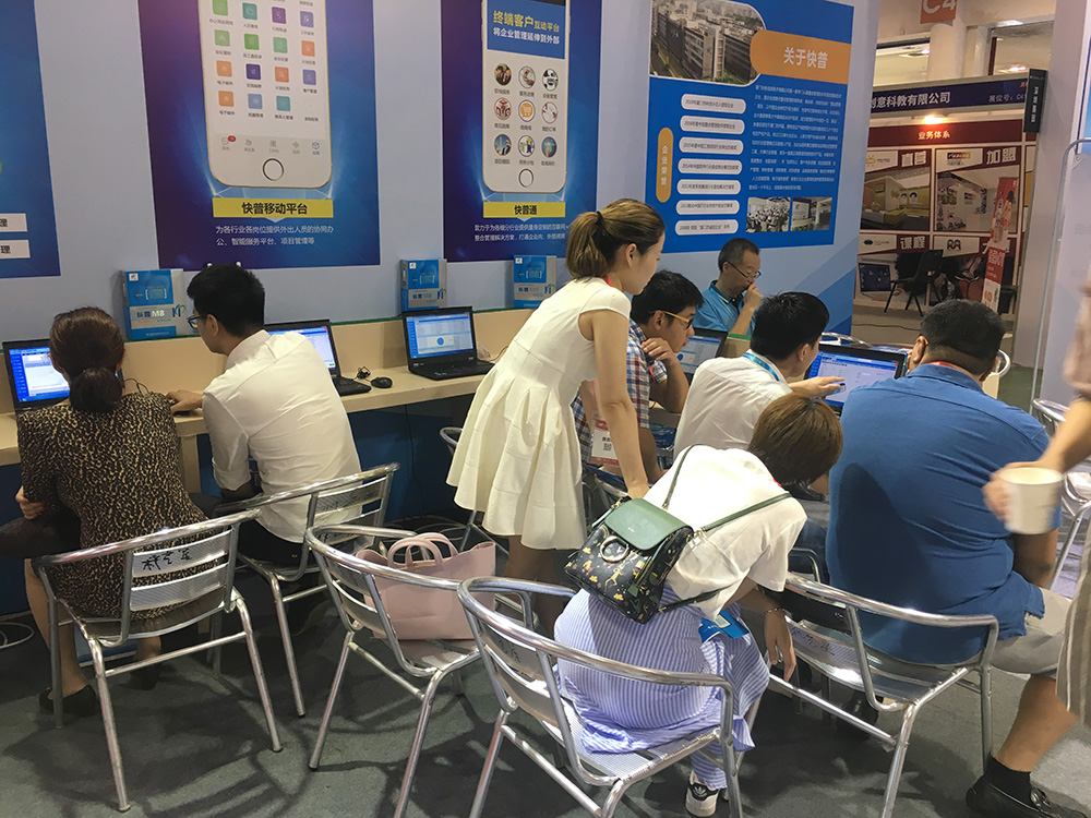 觀眾紛紛加入現場體驗快普M8管理系統(tǒng),體驗強大的整合管理功能。