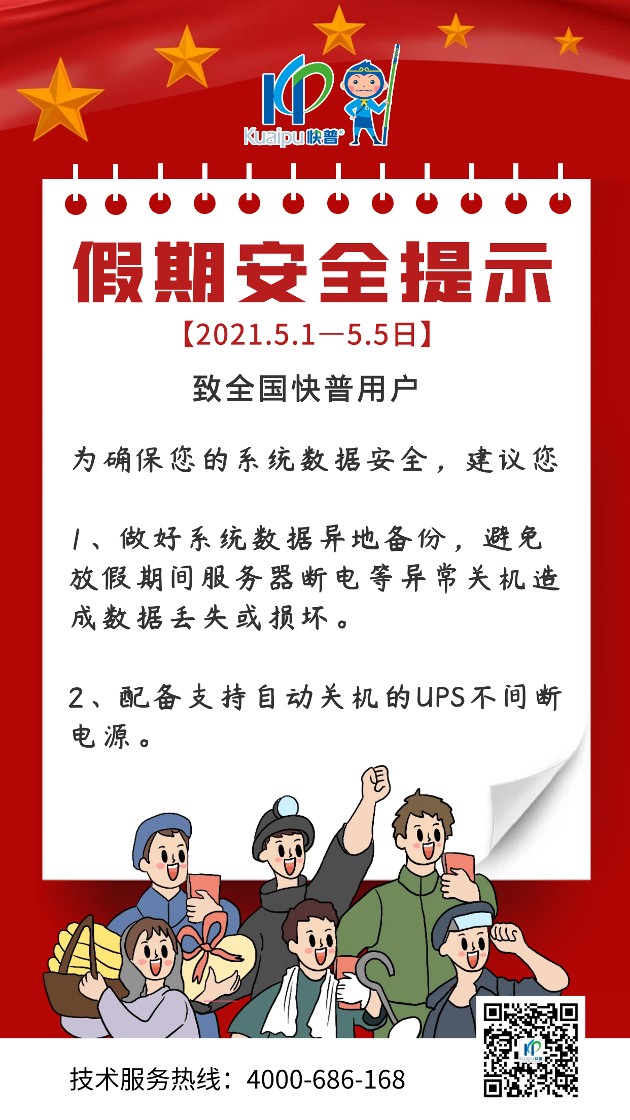 在此也特別提醒您:放假期間注意快普系統(tǒng)數(shù)據(jù)安全,最好將整個快普數(shù)據(jù)做一下異地備份,以免放假期間服務(wù)器斷電等異常關(guān)機(jī)造成數(shù)據(jù)丟失或損壞,盡量配備下支持自動關(guān)機(jī)的UPS不間斷電源。